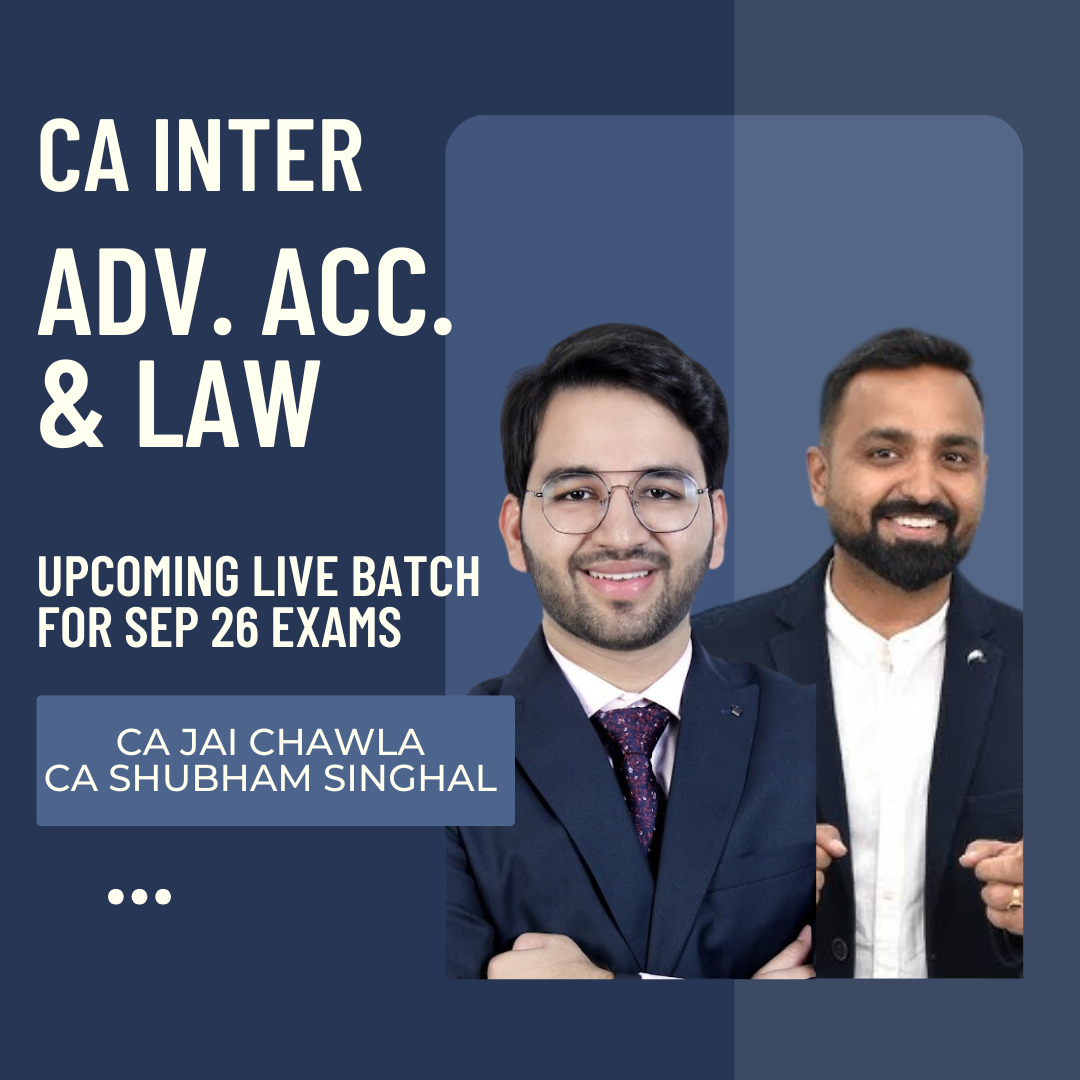 CA Inter Adv Acc & law Combo Regular Batch by CA Jai Chawla & CA Shubham Singhal. These Lectures are Beneficial for Sep 2026 & Jan 2027 Exams. Study Material will be provided with the same.