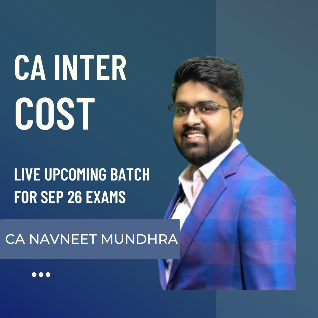 CA Inter Costing Live Regular Batch By CA Navneet Mundhra in approx 190 Hrs. These Lectures are beneficial for Sep 26 Exams. Study Materials will be provided with the same.