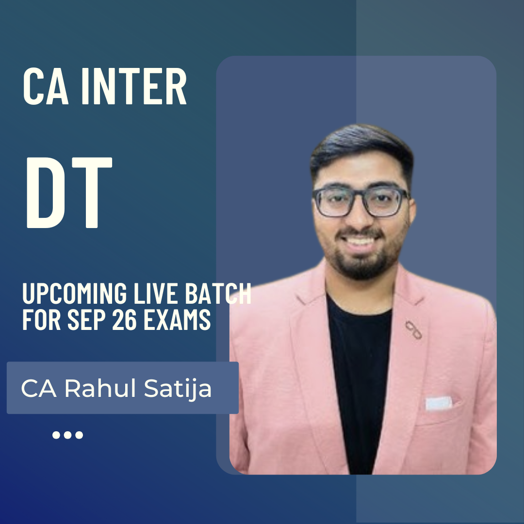 CA Inter DT by CA Rahul Satija. These Lectures are Beneficial For Sep 26 Exams Attempt. Study Material will be Provided with the Same.