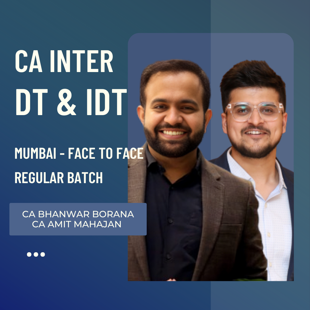 CA Inter DT by CA Bhanwar Borana & IDT by CA Amit Mahajan Face to Face Regular Batch in Mumbai. Beneficial for May 26 & Sep 26 Exams.