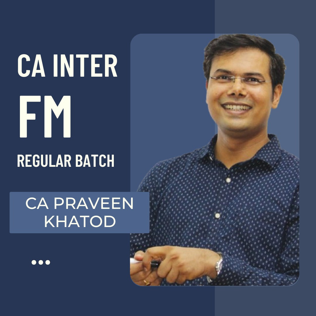 CA Inter Financial Management Regular Batch By CA Praveen Khatod in 140 Hours. These Lectures are beneficial For Jan 26 & May 26 Exams attempts. Study Materials will be provided with the same.