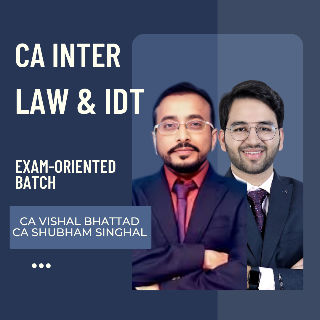 CA Inter Law & IDT Combo Exam-Oriented Batch by CA Shubham Singhal & CA Vishal Bhattad. These Lectures are Beneficial for Jan 26 Exams. Study Material will be provided with the same.