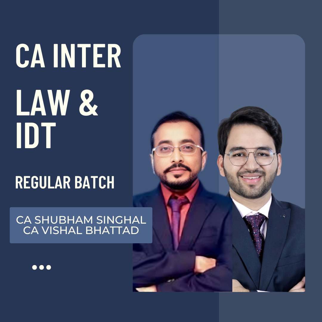 CA Inter Law & IDT Combo Regular Batch by CA Shubham Singhal & CA Vishal Bhattad. These Lectures are Beneficial for Jan 26 & May 26 Exams. Study Material will be provided with the same.