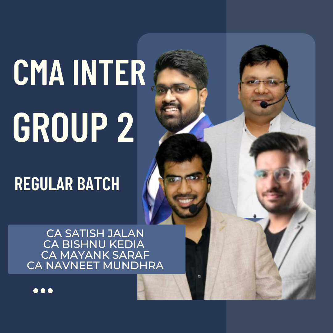 CMA Inter Group 2 Regular Batch Combo by CA Mayank Saraf, CA Bishnu Kedia, CA Navneet Mundhra & CA Sarish Jalan for Dec 25 Exams. Study Material will be provided with the same.
