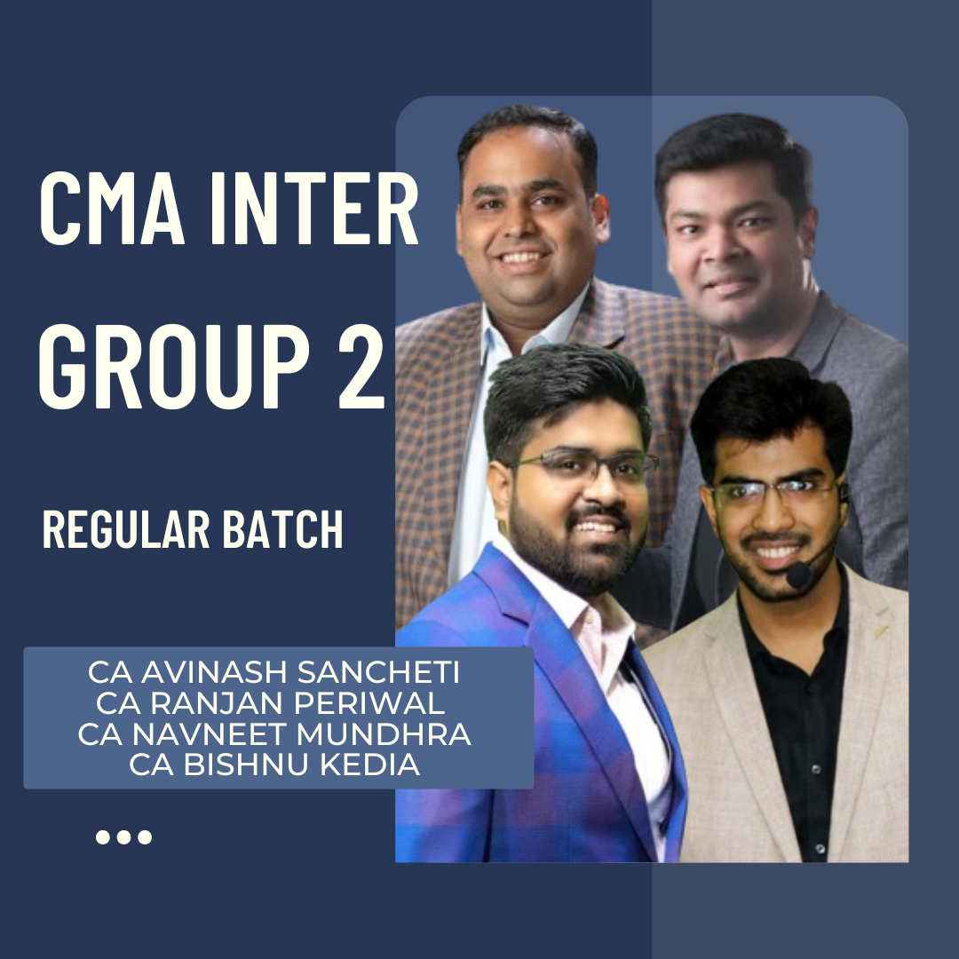 CMA Inter Group 2 Regular Batch Combo by CA Ranjan Periwal, CA Avinash Sancheti, CA Bishnu Kedia & CA Navneet Mundhra for Dec 25 Exams. Study Material will be provided with the same.