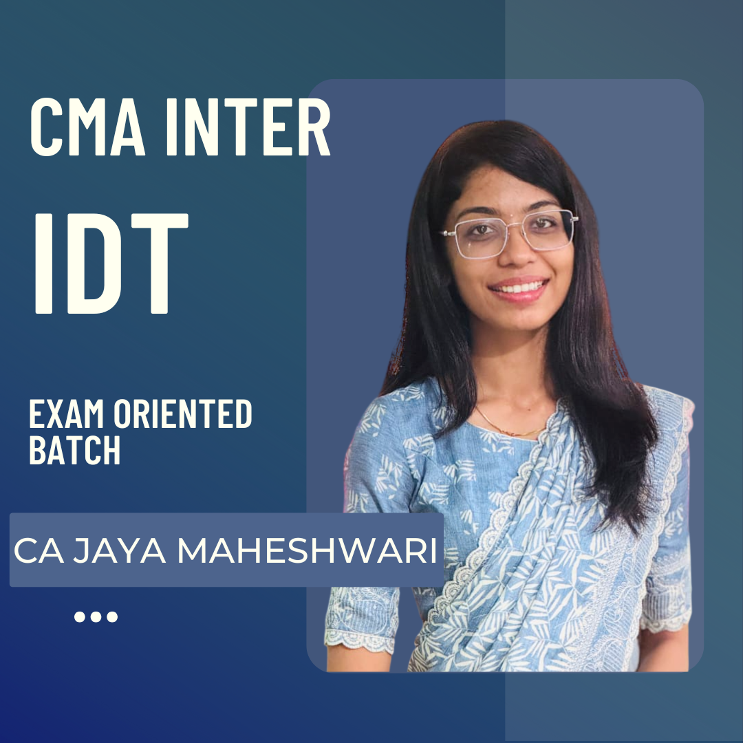 CMA Inter Indirect Tax (IDT) Exam Oriented Batch by CA Jaya Maheshwari in 70 Hrs. These Lectures are Beneficial for Dec 25 Exams. Study Material will be Provided with the Same (If Opted).